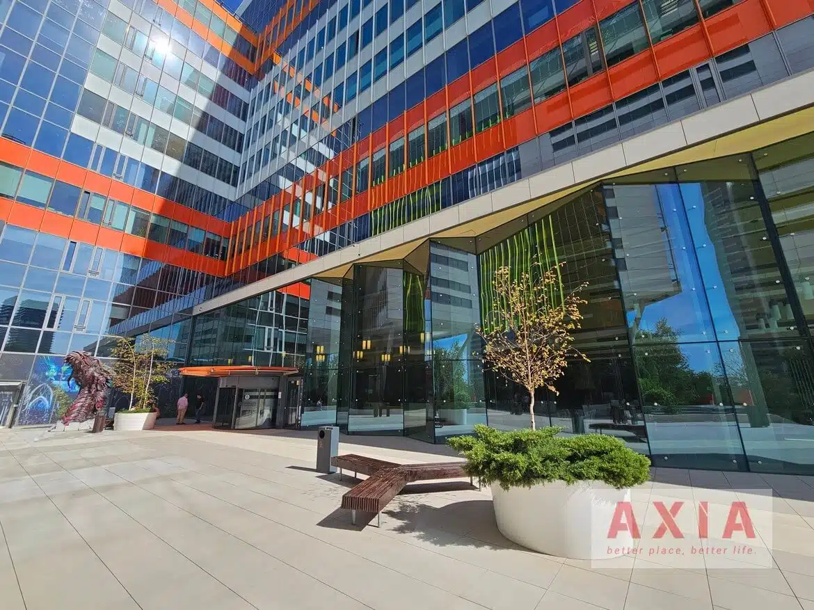 Fatada din sticla cu izolatie fonica, termica si protectie solara ofera un inalt grad de confort in orice perioada a anului.
